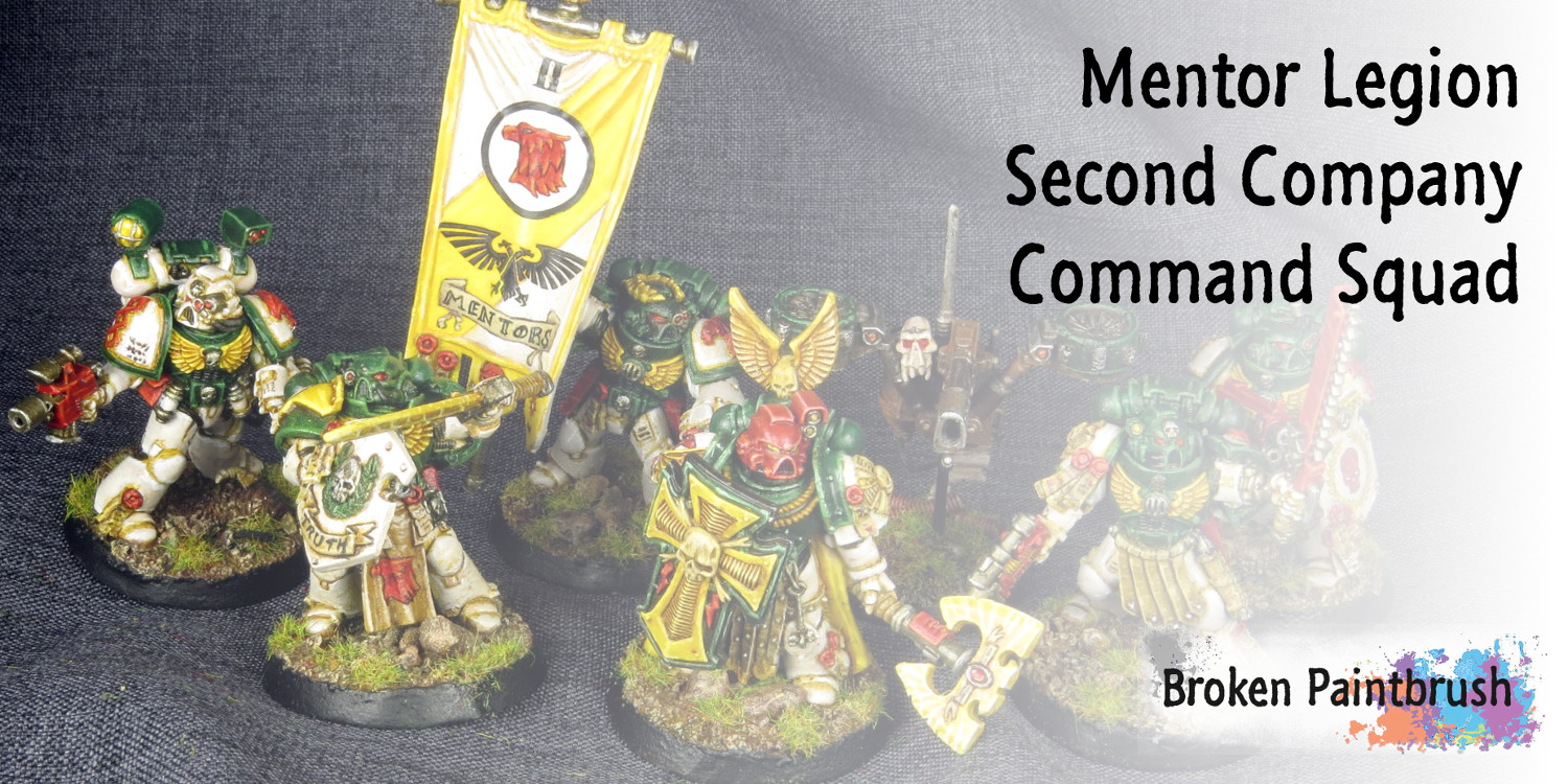 I have completed my Mentor Legion Company Command Squad led by the Master of the Watch, Captain Rothn Ryn. At one point Games Workshop released a four-pack of the ‘masters,’ four metal space marine captains that created an Apocalypse formation (before the current formation styles). This is the Captain of the Second Company, the Master of the Watch with subtle conversions such as the helmeted head and winged skull on the backpack. The Master of the Watch is responsible for the protection of the Fortress Monastery and the chapter’s relics. As such he is armed for defense with his storm shield and symbolic key to the keep. There is just something about Space Marines with capes. One of the cool things about the Mentor Legion is their vague background and history of working with other chapters. So when I was reading through the Space Marine codex for ideas on how to build out my chapter, I liked the idea of using the different chapter characters as baselines for each captain. Being armed with a storm shield and …